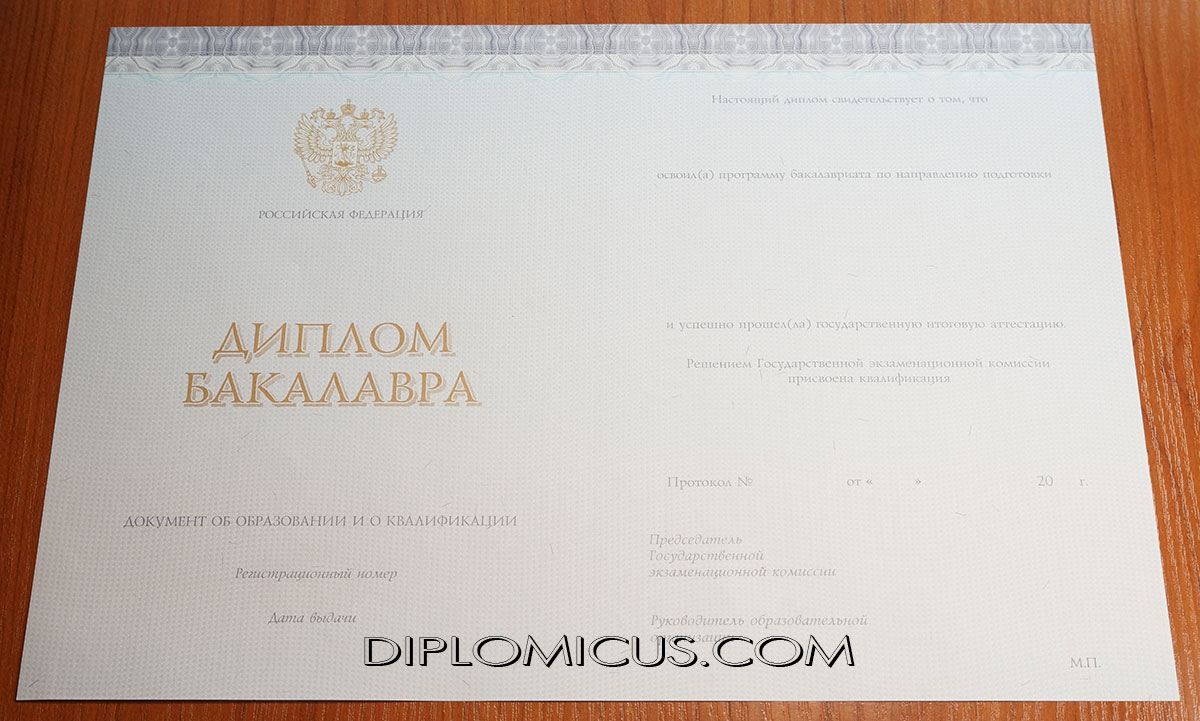 Среди отличительных особенностей дипломов о высшем образовании нового образца является их внешний вид (сам диплом отличается по структуре и по цвету, а приложение с оценками стало формата А3), поэтому многие хотят купить диплом бакалавра именно последнего образца (новый образец пошёл с 2014 года). Наша компания готова предложить Вам диплом бакалавра как на самых новых бланках, так и на старых, выдаваемых ранее. При чём, практически по всем годам выпуска есть настоящие бланки ГОЗНАК.